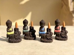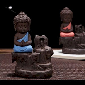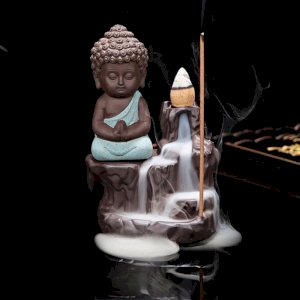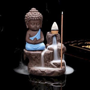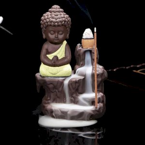 A back-flow incense burner that creates an illusion of a smokey waterfall. This piece of art has lord Buddha sitting and meditating beside the waterfall. Simply place an incense cone at the top of the waterfall, and with the cone's special properties, the smoke starts to flow in reverse direction, that is from top to bottom, and in-turn creates a beautiful smokey waterfall. With scented smoke flowing in waves beside the Buddha, this makes the perfect housewarming gift for any home!